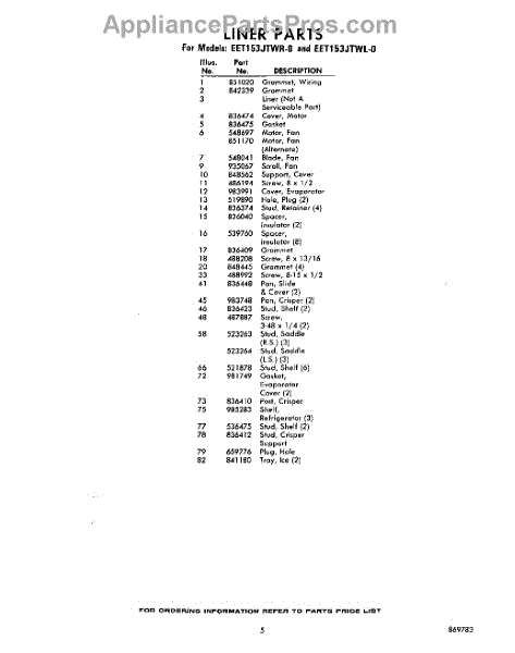 Parts for EET153JTWR0