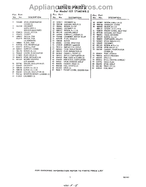 Parts for Whirlpool EET171MKWR0: 05 - Section Parts