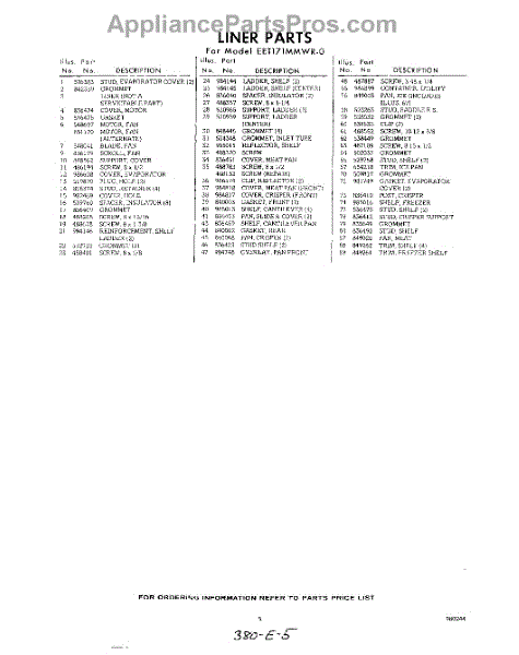 Parts for Whirlpool EET171MMWR0: 05 - Section Parts