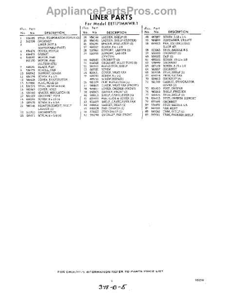 Parts for Whirlpool EET171MMWR1: 05 - Section Parts