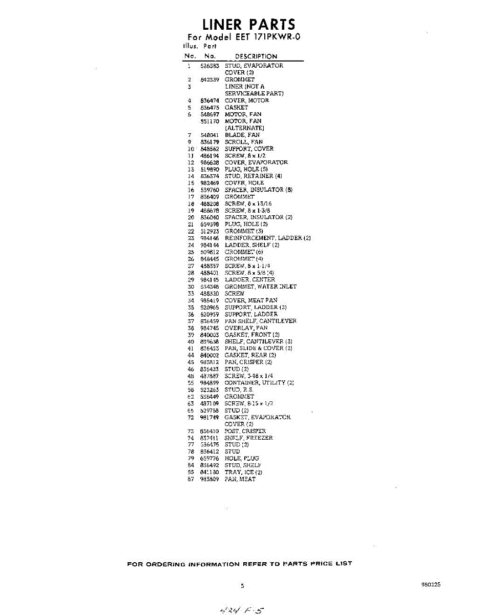 Parts for Whirlpool EET171PKWR0: 05 - Section Parts