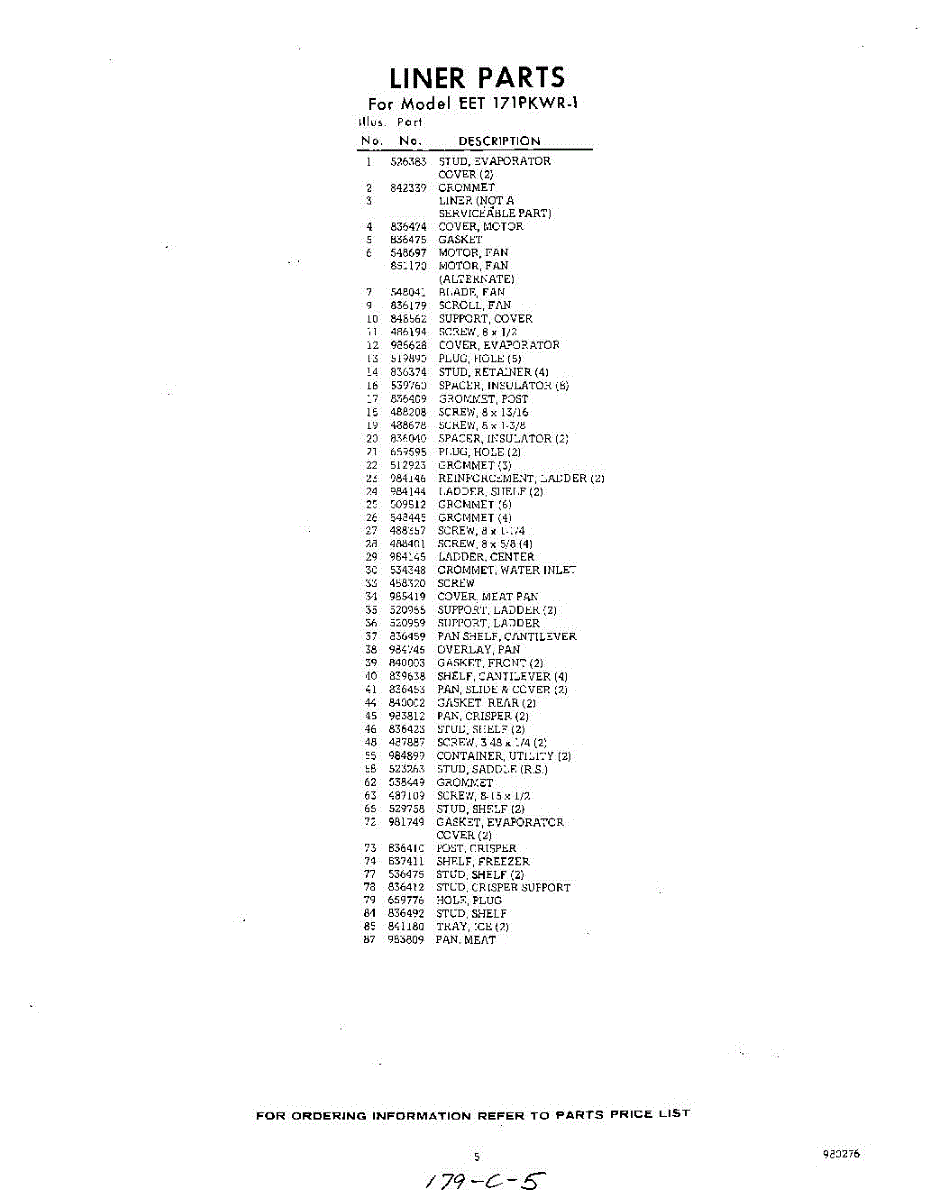 Parts for Whirlpool EET171PKWR1: 05 - Section Parts