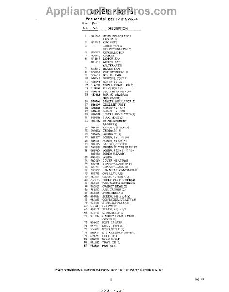 Parts for EET171PKWR4