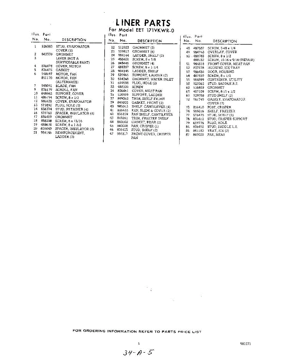 Parts for Whirlpool EET171VKWR0: 05 - Section Parts