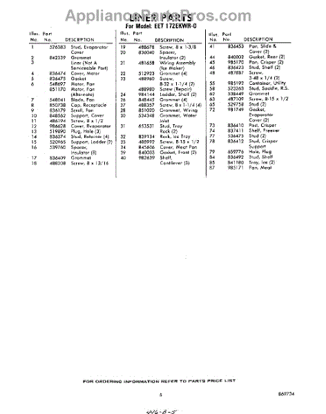 Parts for Whirlpool EET172EKWR0: 05 - Section Parts