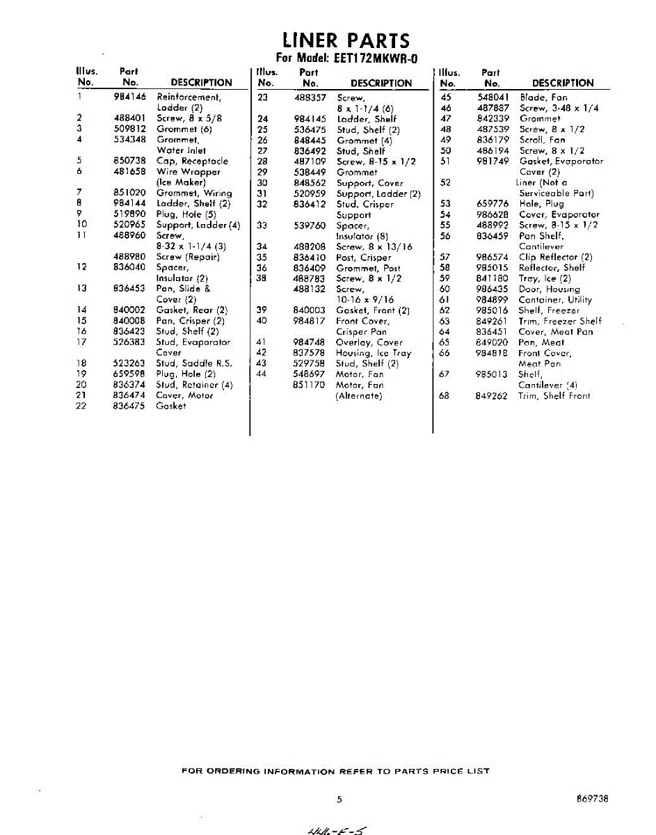 Parts for Whirlpool EET172MKWR0: 05 - Section Parts