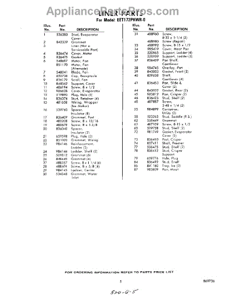 Parts for Whirlpool EET172PKWR0: 05 - Section Parts