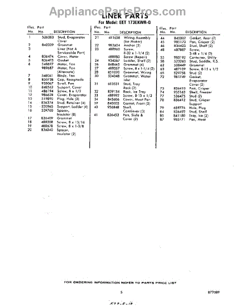 Parts for Whirlpool EET173EKWR0: 05 - Section Parts