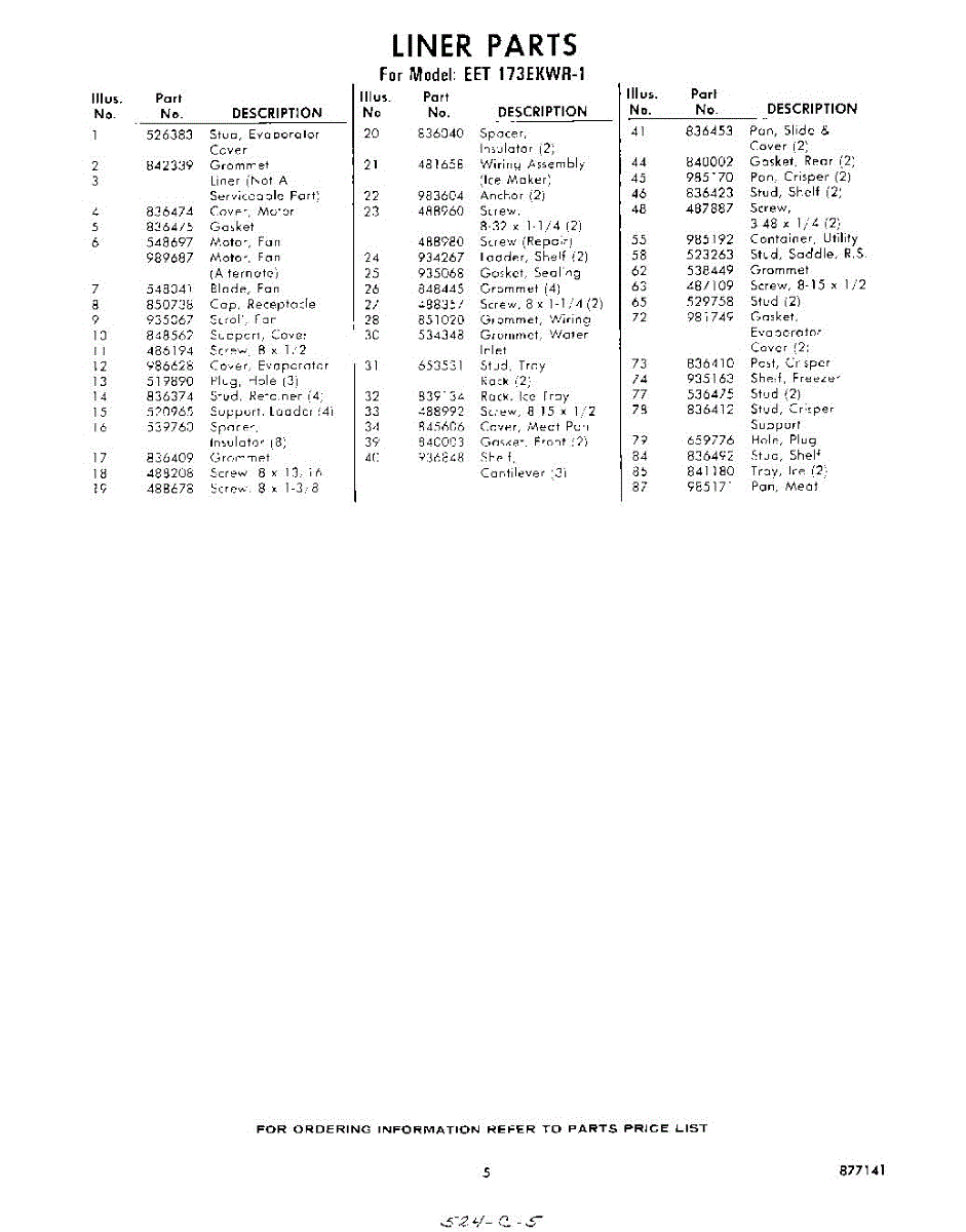Parts for Whirlpool EET173EKWR1: 05 - Section Parts