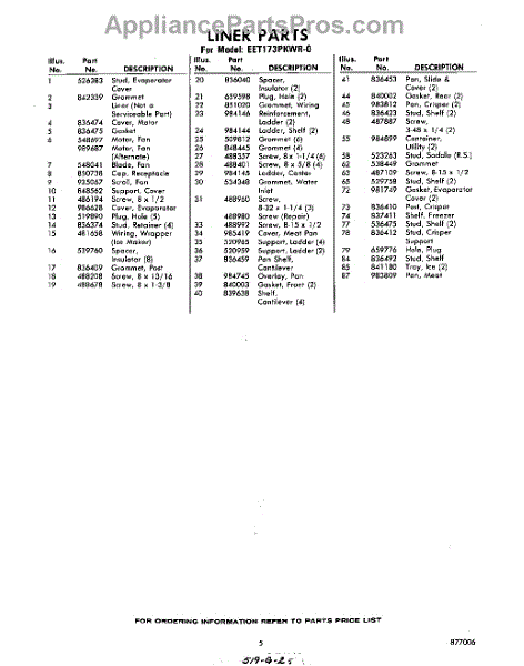 Parts for Whirlpool EET173PKWR0: 05 - Section Parts