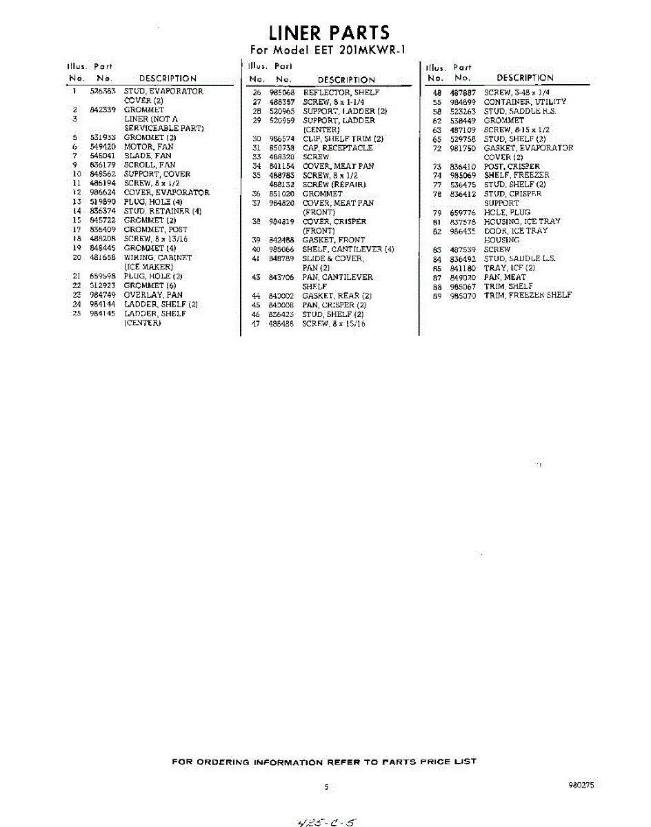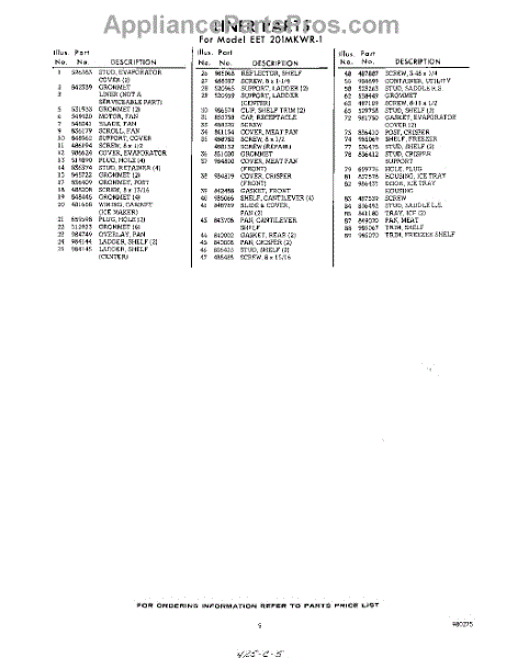 Parts for Whirlpool EET201MKWR1: 05 - Section Parts