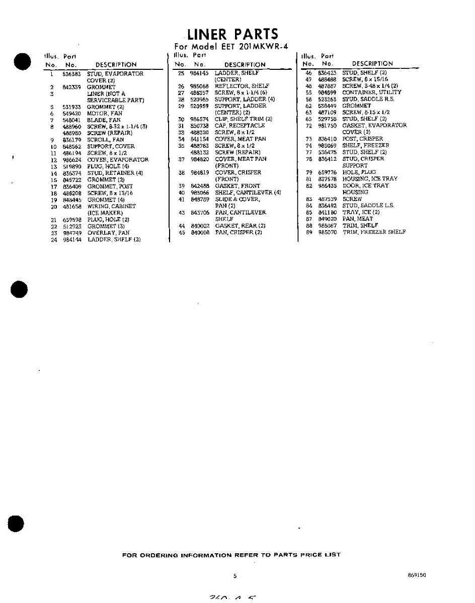 Parts for Whirlpool EET201MKWR4: 05 - Section Parts