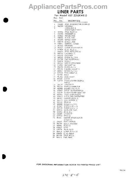 Parts for Whirlpool EET221EKWR0: 05 - Section Parts