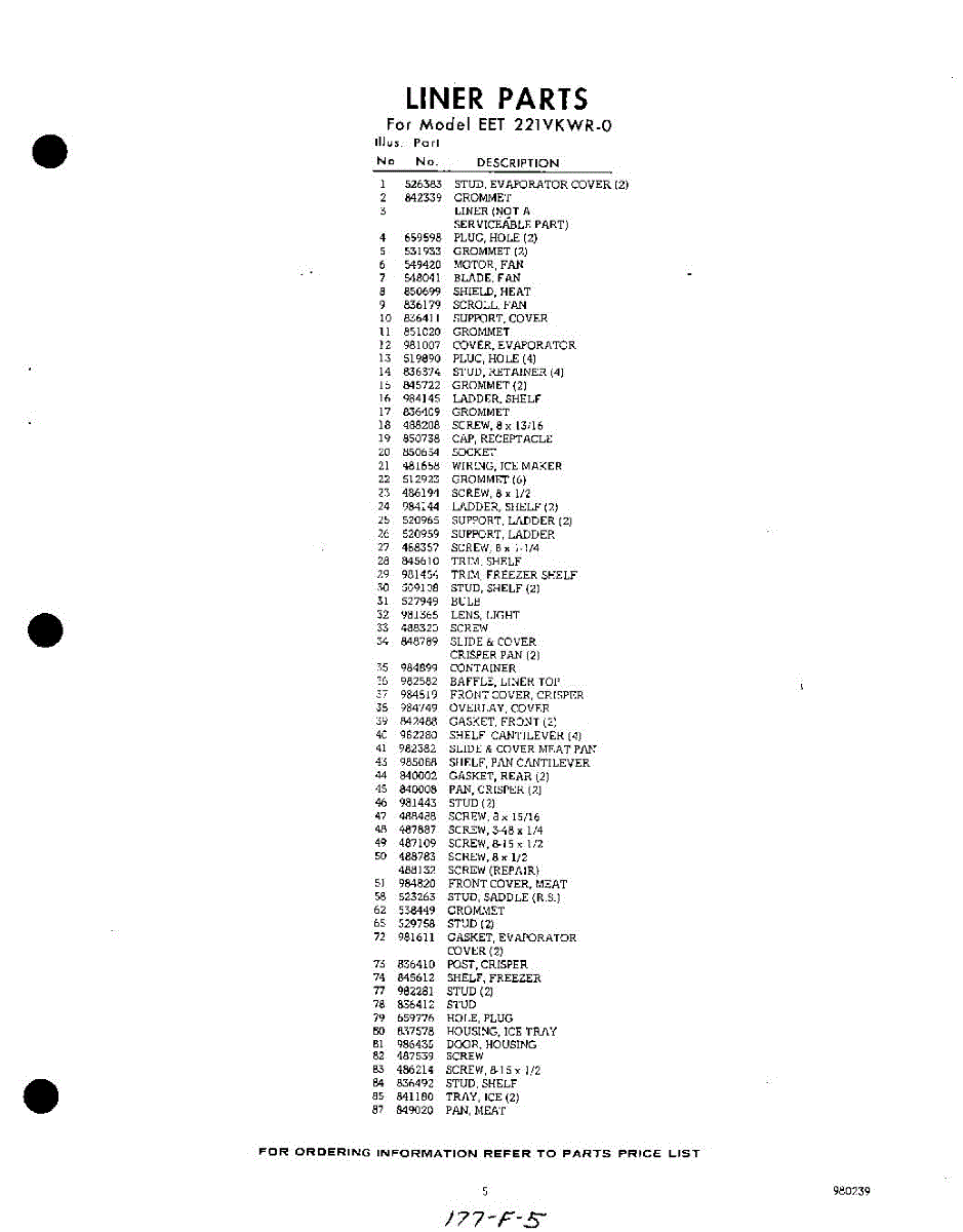 Parts for Whirlpool EET221VKWR0: 05 - Section Parts