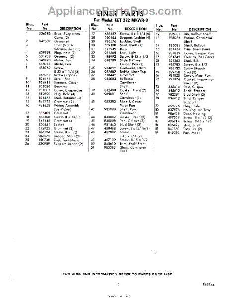 Parts for Whirlpool EET222MKWR0: 05 - Section Parts