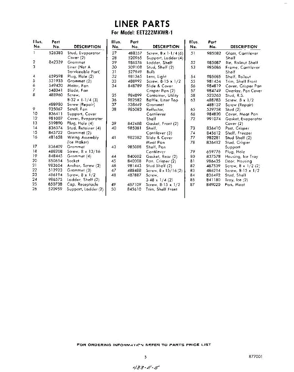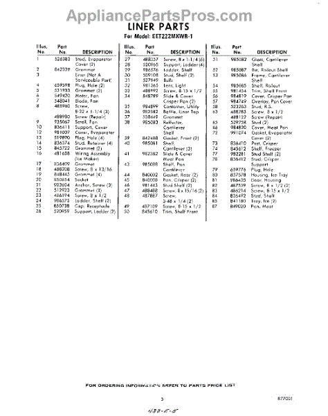 Parts for Whirlpool EET222MKWR1: 05 - Section Parts