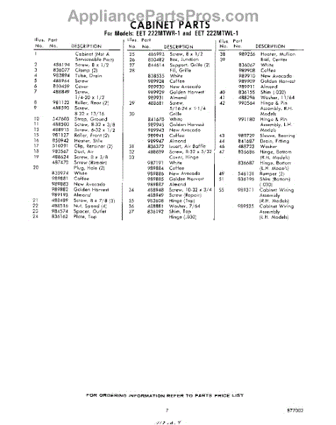 Parts for EET222MTWR1