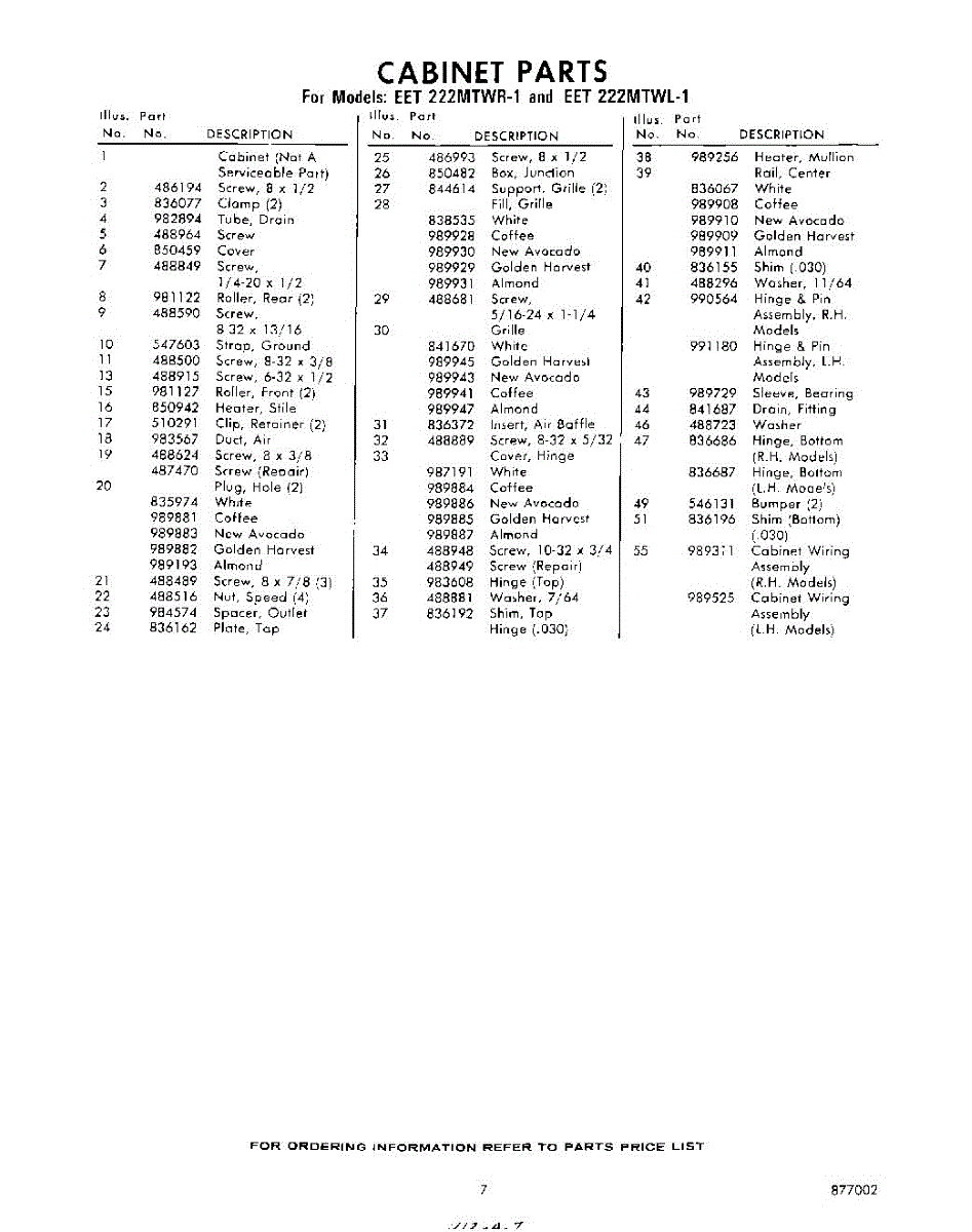 Parts for Whirlpool EET222MTWR1: 07 - Section Parts