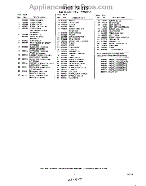 Parts for EEV152NW0