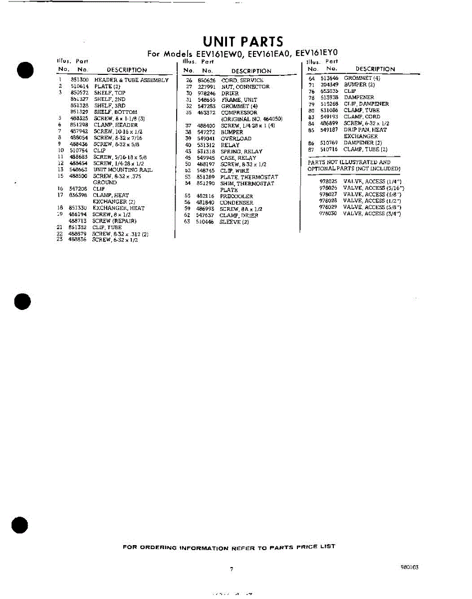 Parts for Whirlpool EEV161EA0: 07 - Section Parts