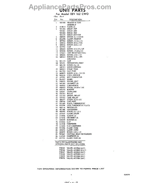 Parts for EEV162CW0