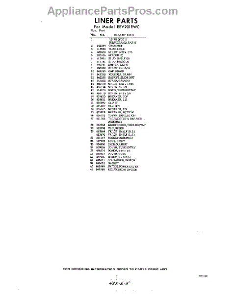 Parts for Whirlpool EEV201EW0: 05 - Section Parts