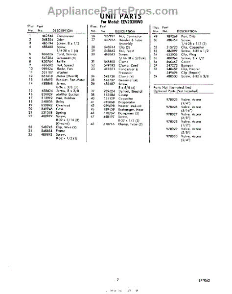 Parts for Whirlpool EEV203NW0: 07 - Section Parts