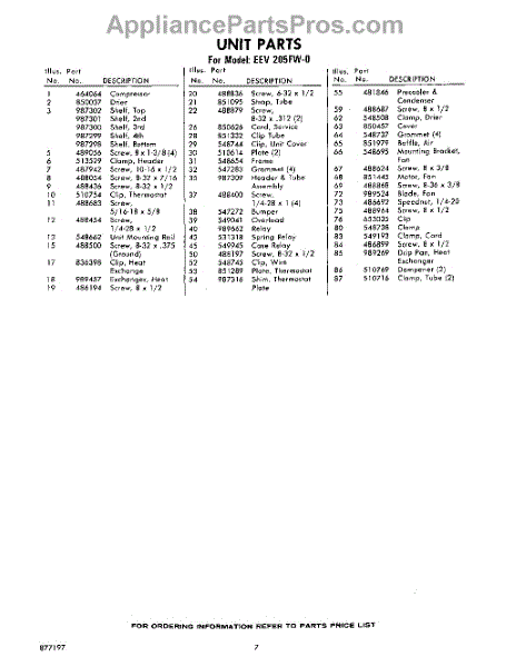 Parts for Whirlpool EEV205FW0: 07 - Section Parts