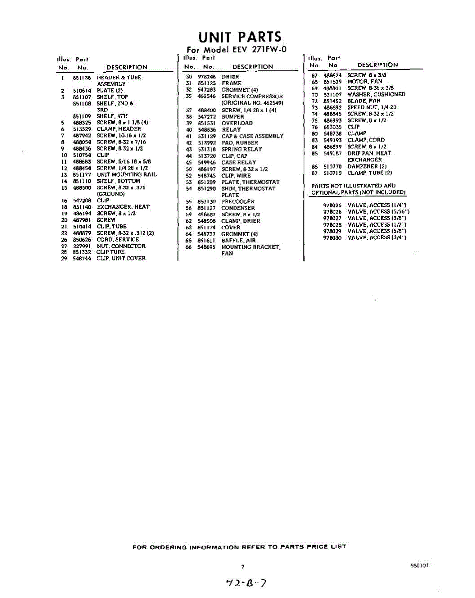Parts for Whirlpool EEV271FW0: 07 - Section Parts