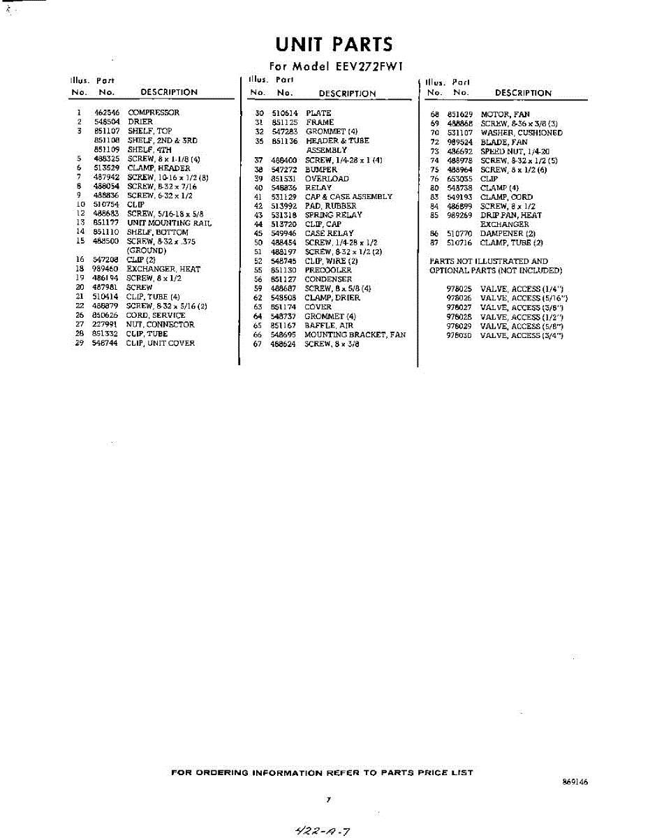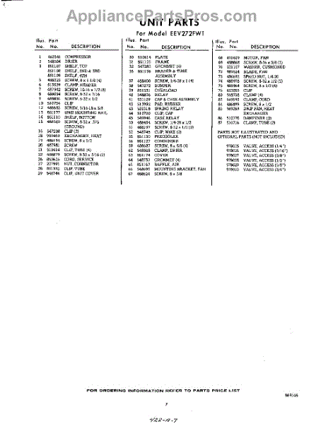Parts for EEV272FW1