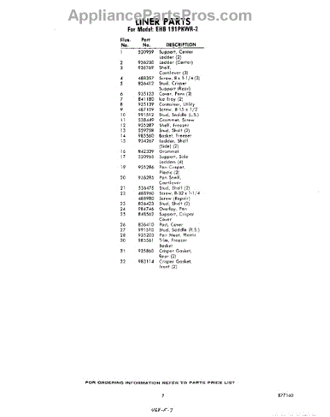 Parts for EHB191PKWR2