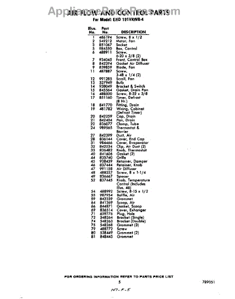 Parts for EHD191VKWR4