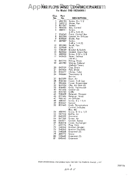 Parts for Whirlpool EHD192XKWR1: 05 - Section Parts