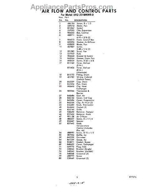 Parts for Whirlpool EHD221MKWR0: 05 - Section Parts