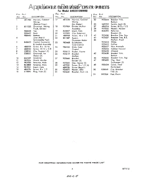 Parts for Whirlpool EHD251SMWR0: 05 - Section Parts