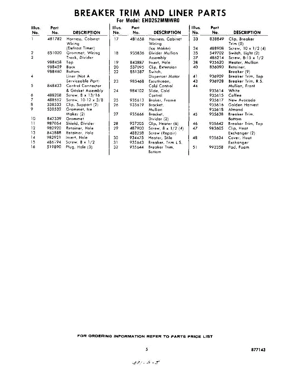 Parts for Whirlpool EHD252MMWR0: 05 - Section Parts