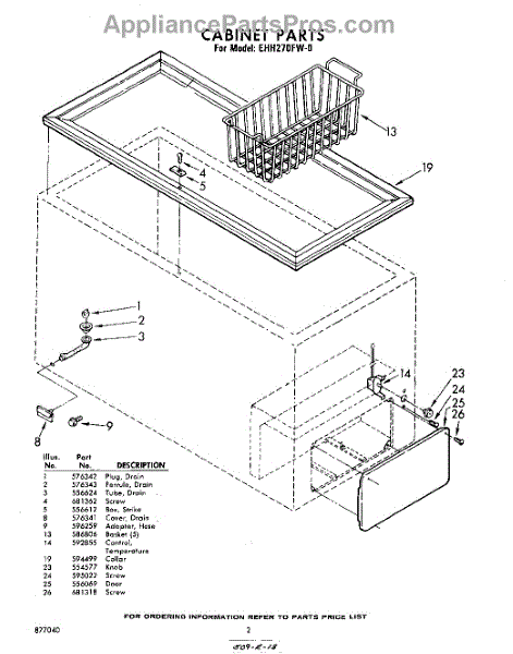 Parts for Whirlpool EHH270FW0: 02 - Section Parts