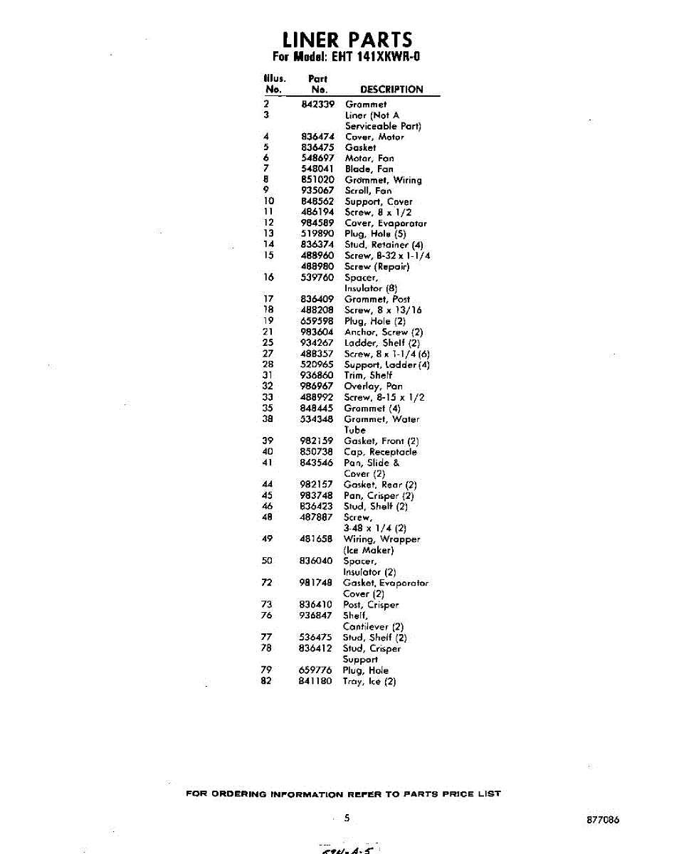 Parts for Whirlpool EHT141XKWR0: 05 - Section Parts