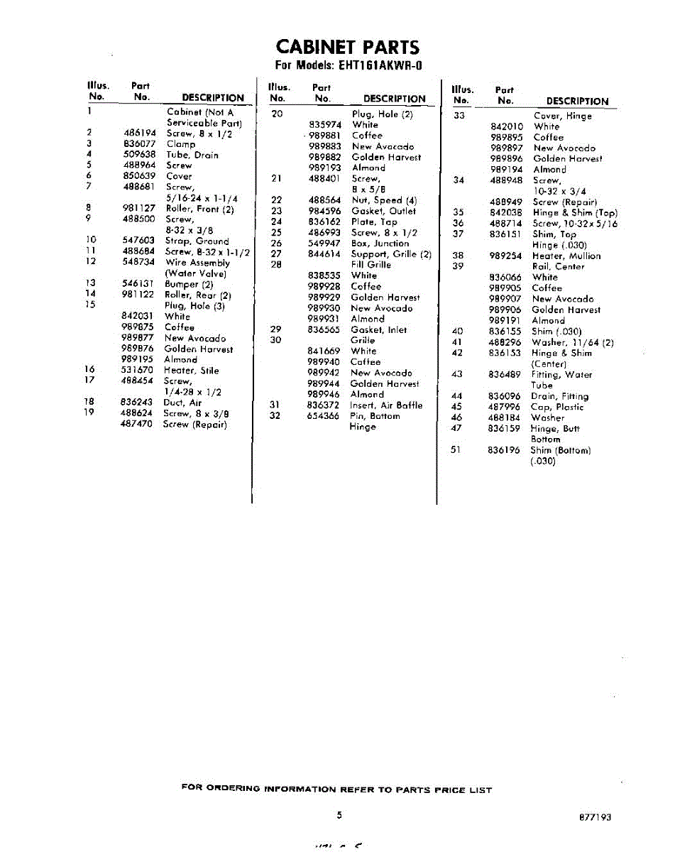Parts for Whirlpool EHT161AKWR0: 05 - Section Parts