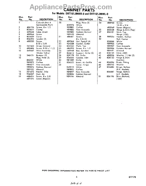 Parts for Whirlpool EHT161JMWR0: 05 - Section Parts