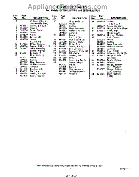 Parts for Whirlpool EHT161JMWR1: 05 - Section Parts