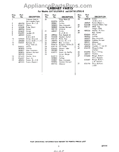 Parts for Whirlpool EHT161JTWR0: 05 - Section Parts