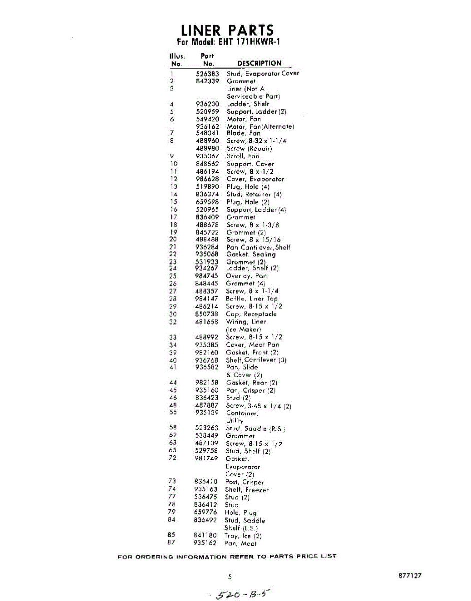 Parts for Whirlpool EHT171HKWR1: 05 - Section Parts