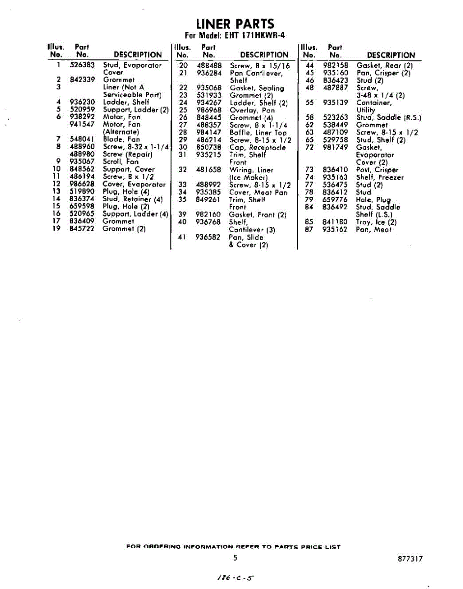Parts for Whirlpool EHT171HKWR4: 05 - Section Parts