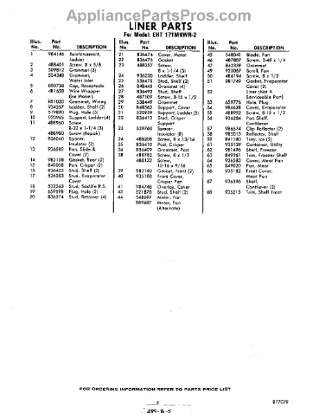Parts for Whirlpool EHT171MKWR2: 05 - Section Parts