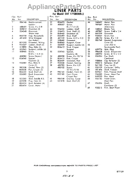 Parts for Whirlpool EHT171MKWR3: 05 - Section Parts