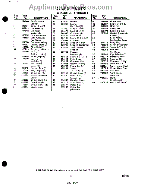 Parts for Whirlpool EHT171MKWR4: 05 - Section Parts