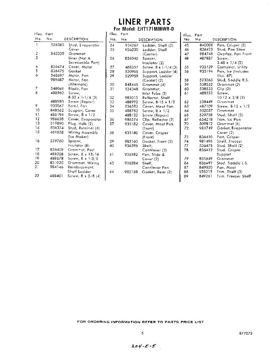 Parts for Whirlpool EHT171MMWR0: 05 - Section Parts