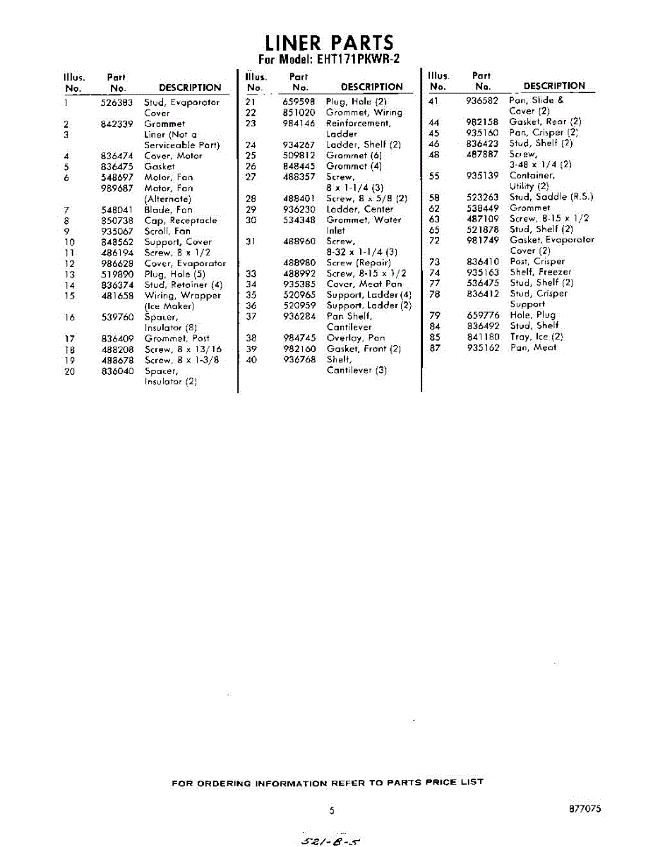 Parts for Whirlpool EHT171PKWR2: 05 - Section Parts