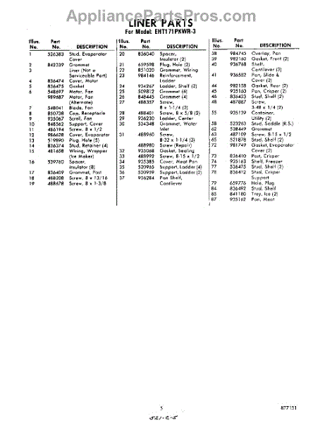 Parts for Whirlpool EHT171PKWR3: 05 - Section Parts